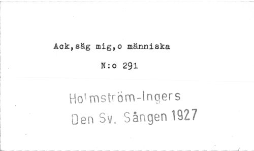 //// Ack,säg mig,o människa //// N:0 291 //// H& kfl strö rn -Ingers //// Den Sv. Sången 1927 ////