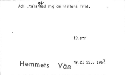 //// Ack ,tala mig om himlens frid. //// I9.str //// Hemmets Vän Nr.2I 22.5 I963 ////