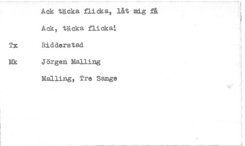 //// Ack täcka flicka, låt mig få Ack, täcka flickat //// Tx Ridderstad //// Mk Jörgen Malling //// Maning, Tre Sange ////