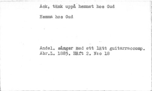 //// Ack, tänk uppå hemmet hos Gud Hemma hos Gud //// Andel. sånger med ett lätt guitarracoomP. Abr.i. 1885. Käft 2. Nto 18 ////
