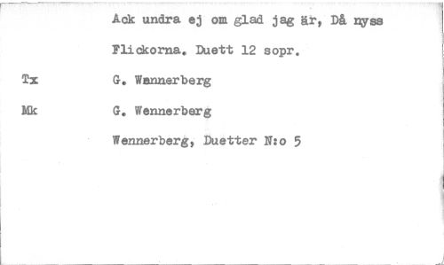 //// Ack undra ej om glad jag är, Då nyss //// Flidkorna. Duett 12 sopr. //// Tx G. Wennerberg //// Dqk G. Wennerberg //// Wennerberg, Duetter N:o 5 ////
