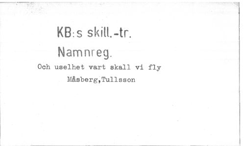 //// KB:s //// Namnreg. //// Och uselhet vart skall vi fly Måsberg,Tullsson ////
