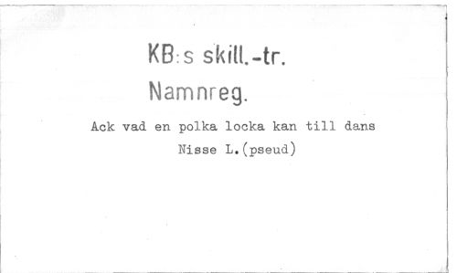 //// KB: s sill.-tr. //// Namnreg. //// Ack vad en polka locka kan till dans Nisse L.(pseud) ////