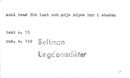 //// Aakk hvad för lust och nöje köpes här i_ staden //// text se 15 //// mus. s. 149 Set Han //// Ungdomsdikter ////