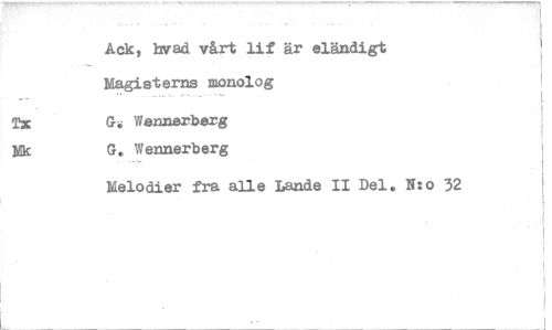 //// Ack, livad vårt lif är eländigt Magisterns monolog //// G. Wennerberg //// Mk G. Wennerberg //// Melodier fra alle Lande II Del. N:o 32 ////