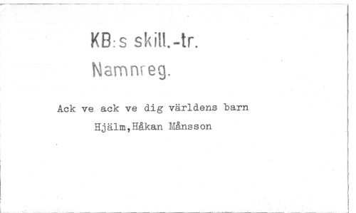 //// KB:s skill-tr. //// Namnreg. //// Ack ve ack ve dig världens barn Hjälm, Håkan Månsson ////