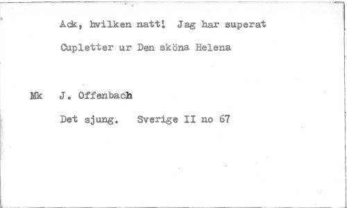 //// Ack, bvilken natt: Jag har superat //// Cupletter ur Den sköna Helena //// Nk J. Offenbacl //// Det sjung. Sverige II no 67 ////