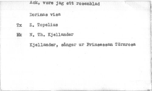 //// Ack, vore jag ett rosenblad //// Dotinas visa //// Tx Z. Topelius //// Er N. Th, Kjellander //// Kjellander, sånger ur Prinsessan Törnrosa ////