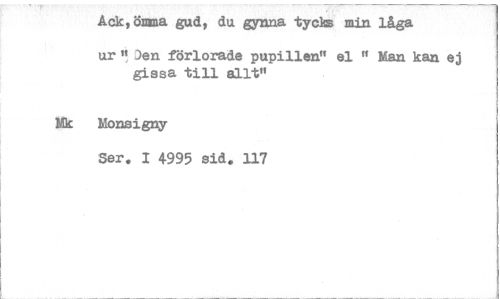 //// Acklömma gud, du gynna tycks min låga //// urtf)en förlorade pupillen" el " Man kan ej gissa till allt" //// Mk Monsigny //// Ser. I 4995 sid. 117 ////