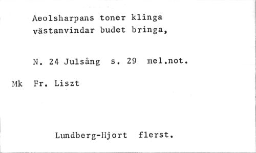 //// Aeolsharpans toner klinga västanvindar budet bringa, //// N. 24 Julsång s. 29 mel.not. Hk Fr. Liszt //// Lundberg-Hjort flerst. ////