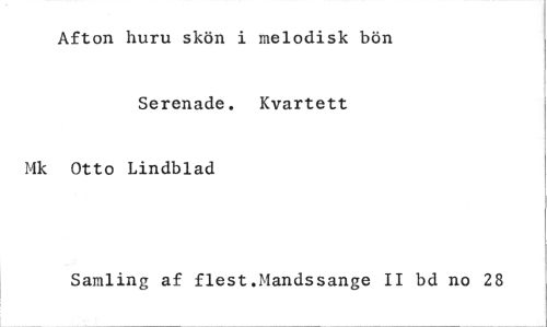//// Afton huru skön i melodisk bön //// Serenade. Kvartett Mk Otto Lindblad //// Samling af flest.Mandssange II bd no 28 ////
