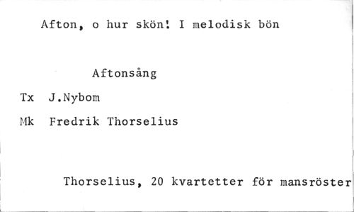 //// Afton, o hur skön: I melodisk bön //// Aftonsång Tx J.Nybom //// rik Fredrik Thorselius //// Thorselius, 20 kvartetter för mansröster ////