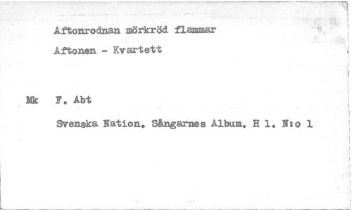 //// Aftonrodnan mörkröd flammar Aftonen - Kvartett //// Mk F. Abt //// Svenska Nation. Sångarnas Album. R 1. N:o 1 ////