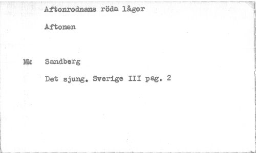 //// Aftonrodnana röda lågor Aftonen //// lik Sandberg //// Det sjung. Sverige III pag. 2 ////