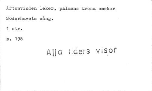 //// Aftonvinden leker, palmens krona smeker Söderhavets sång. //// 1 str. s. 198 //// Alic (års visor ////