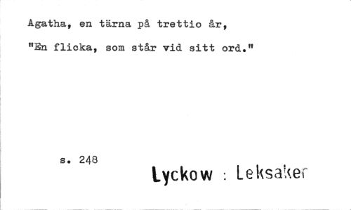 //// Agatha, en tärna på trettio år, //// "En flicka, som står vid sitt ord." //// s. 248 lyckow : Leksaker ////