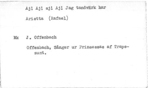 //// Aj". Aj; aj'. Aj: Jag tandvärk har Arietta (Rafael) //// Mk J. Offenbach //// Offenbach, Sånger ur Prinsessas af Trapezunt. ////