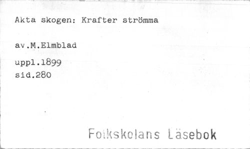 //// Akta skogen: Krafter strömma a-v.M.Elmblad //// upp1.1899 sid.280 //// Foskoans Läsebok ////