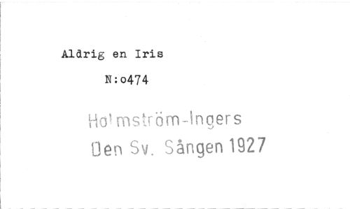 //// Aldrig en Iris //// N:o474 //// H& ms röm-Ingers //// Oen Sv. Sången 1927 ////