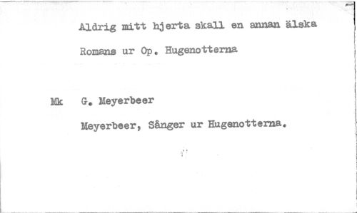//// Aldrig mitt hjerta skall en annan älska Romans ur Op. Hugenotterna //// Mk G. Meyerbeer //// Meyerbeery Sånger ur Hugenotterna. ////