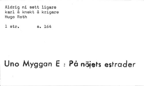 //// Aldrig ni sett ligare karl å knekt å krigare Hugo Roth //// 1 str. s. 164 //// Uno Myggan E : På nöjets estrader ////