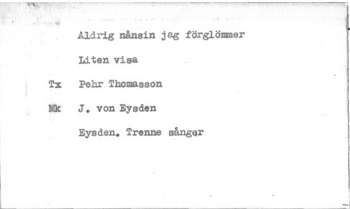 //// Aldrig nånsin jag förglömmer //// Liten visa //// Tx Pehr Thomasson //// Mk J. von Eysden //// Eysden, Trenne sånger ////