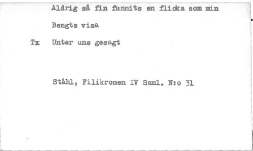 //// Åldrig eå fin finnits en flicka som min Bengts visa //// Tx Unter une geeagt //// Ståtel, Filikromen IV Senil. W:o 31 ////