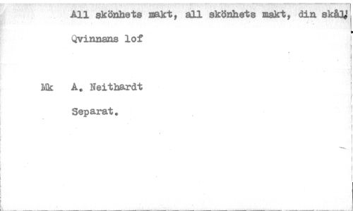 //// Al]. skönhets makt, all skönhets makt, ditt skål Qvinnans lof //// Talk A. Neithardt Separat. ////