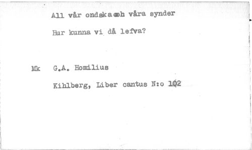 //// All vår ondekamb våra synder Hur kunna vi då lefva? //// Mk G.A. Homilius //// Kihlberg, Liber cantus N:o 1Q2 ////