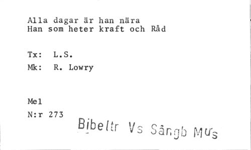 //// Alla dagar är han nära //// Han som heter kraft och Råd //// Tx: L.S. //// Mk: R. Lowry //// Mel //// N:r 273 //// Bibe(tr uar.z- P1(1-- //// Sar,. ////