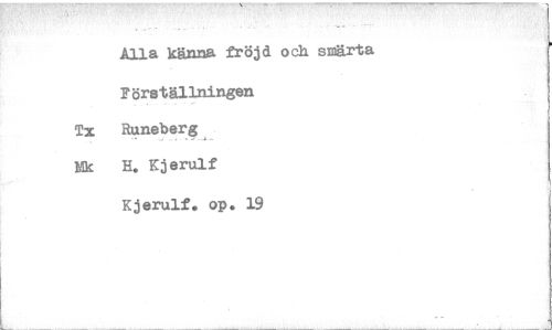 //// Alla känna fröjd och smärta //// Förställningen Tx Runeberg Byk H. Kjerulf //// Kjerulf. op. 19 ////