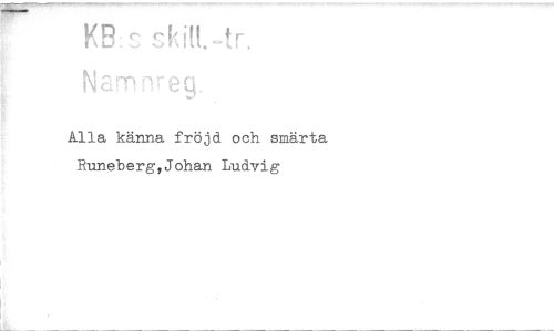//// VD —t,s //// Alla känna fröjd och smärta Runeberg, Johan Ludvig ////