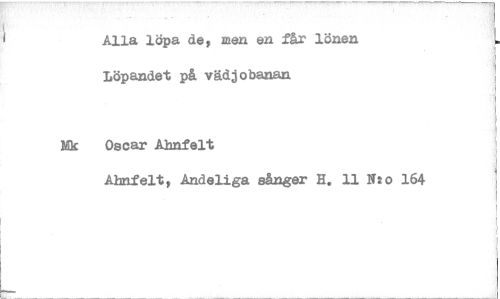 //// Alla löpa de, men en får lönen Löpandet på vädjobanan //// Mk Oscar Abnfelt //// Abnfelt, Andeliga sånger H. 11 N:o 164 ////