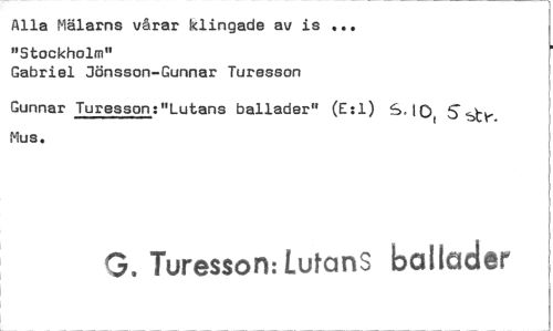 //// Alla Mälarns vårar klingade av is //// "Stockholm" //// Gabriel Jönsson-Gunnar Turesson //// Gunnar Turesson:"Lutans ballader" (E:1) 5.10t Mus. //// G. Turesson: Lutans ballader ////