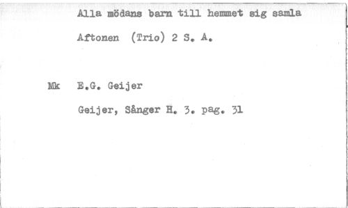 //// Alla mödans barn till hemmet sig samla Aftonen (Trio) 2 S. A. //// Ek B,G. Geijer //// Geijer, Sånger H. 3. pag. 31 ////
