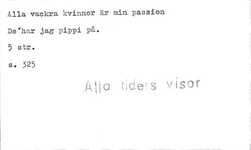 //// Alla vackra kvinnor är min passion //// De'har jag pippi på. //// 5 str. s. 325 //// tiders visor ////