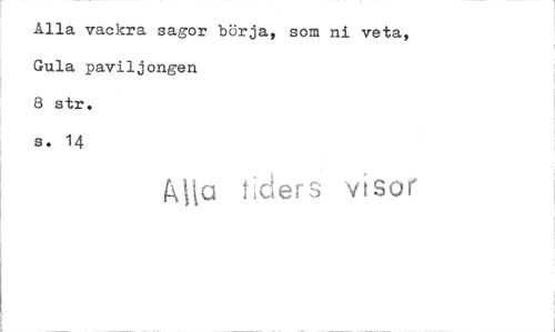 //// Alla vackra sagor börja, som ni veta, Gula paviljongen //// 8 str. s. 14 //// (0Aa liders visor ////
