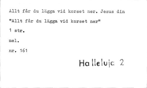 //// Allt får du lägga vid korset ner. Jesus din //// "Allt får du lägga vid korset ner" //// 1 str. //// mel. //// nr. 161 //// Ha Iteluic ////