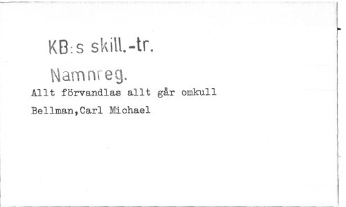 //// KB:s skilt.-tr. //// Namnreg. //// Allt förvandlas allt går omkull Bellman,Carl Michael ////
