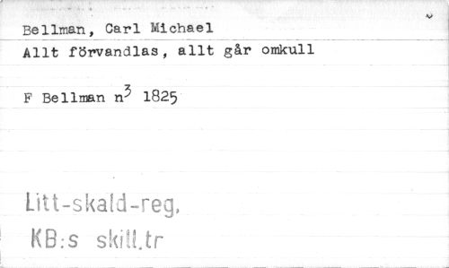 //// Bellman, Carl Michael //// Allt förvandlas, allt går omkull //// F Bellman n3 1825 //// litt-skal-reg, //// KB:s skiN.tr ////