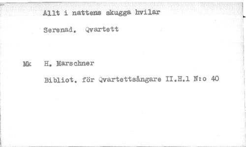 //// Allt i nattens skugga hyllar Serenad. 4vartett //// Nk H. Marsahner //// Bibliot. för 4vartettsångare II.H.1 N:o 40 ////