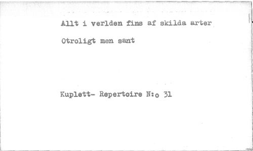 //// Allt i verlden fins af skilda arter Otroligt men sant //// Kuplett- Repertoire N:0 31 ////
