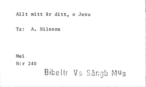 //// Allt mitt är ditt, o Jesu Tx: A. Nilsson //// Mel //// N:r 240 //// Bibeltr Vs Sånnb [lus ////