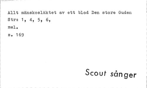 //// Allt mänskosläktet av ett blod Den store Guden Stri 1, 4, 5, 6, //// mel. //// s. 169 //// Scout sånger ////