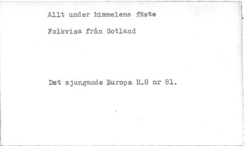 //// Allt under himmelens fäste Folkvisa från Gotland //// Det sjungande Europa H.8 nr 81. ////