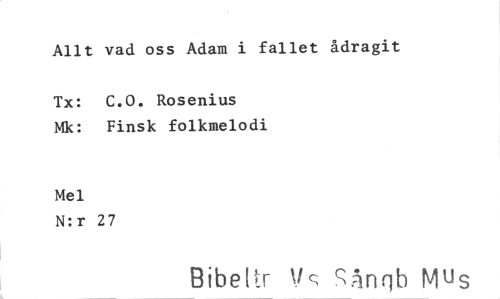 //// Allt vad oss Adam i fallet ådragit //// Tx: C.O. Rosenius Mk: Finsk folkmelodi //// Mel //// N:r 27 //// BibeE r ‘k• :;-!Inqb Mus ////