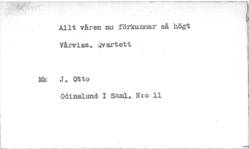 //// Allt våren nu förkunnar så högt Vårvise. Qvartett //// Mk J. Otto //// Odinslund I Saml. N:o 11 ////