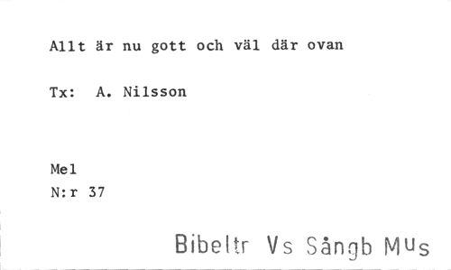 //// Allt är nu gott och väl där ovan Tx: A. Nilsson //// Mel //// N:r 37 //// Bibeltr Vs Sångb Mus ////