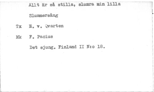 //// Allt är så stillat slumra min lilla //// Slummersång //// Tx E. v. oarten //// Ek F. Pacius //// Det sjung. Finland II N:o 18. ////