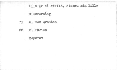 //// Allt är så stilla, slumra min lilla //// Slummersång //// Tx E. von Qvanten //// Ek F. Pacius //// Separat ////